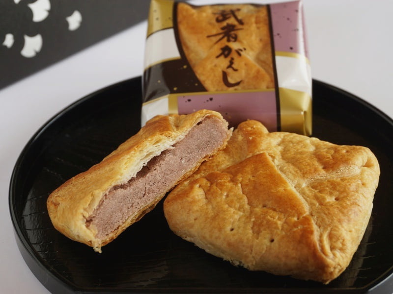 香梅の武者がえしは、100層にも折り上げた繊細なパイに、皮をはいだあずき餡を合わせたもの。