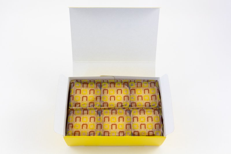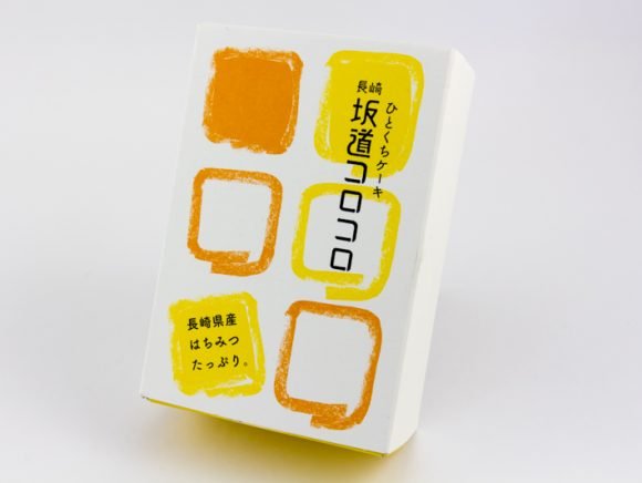石畳をイメージして四角い形に焼き上げられた、この「坂道コロコロ」もカステラ生地で出来たお菓子の1つです。