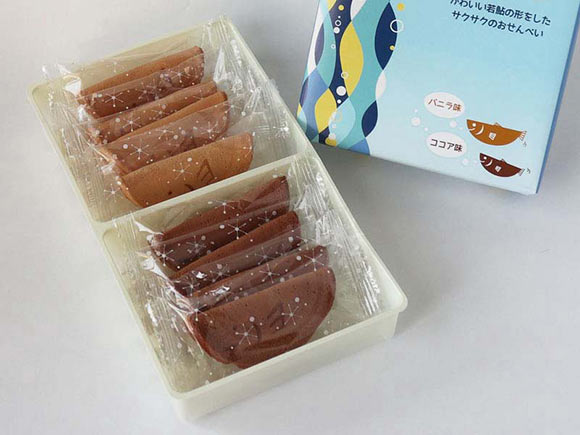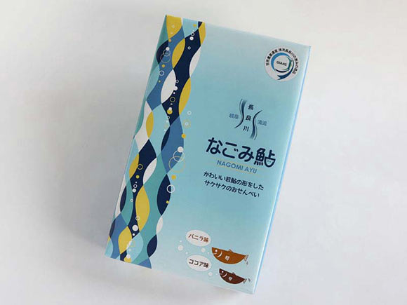 今回はこれらの鮎菓子よりカジュアルな商品。鮎モチーフの洋風せんべい「なごみ鮎」をご紹介します。