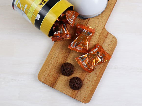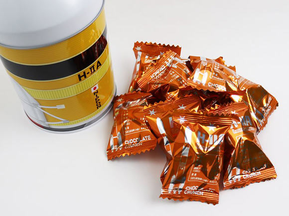 H-IIAロケットをモチーフにした缶の中には、ミルクチョコクランチが10個入っています。