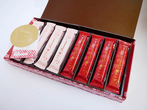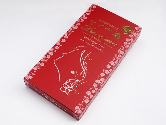 「なごや嬢プレミアム」は、名古屋のお嬢様をイメージしたお菓子「なごや嬢」の発売10周年を記念してつくられた、プレミアムバージョンのお菓子。
