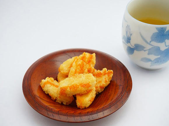 うにあられは、食べやすいひとくちサイズのあられ。丸くてごつごつした表面とは裏腹に、サクッとした口当たりの良さが魅力的です。