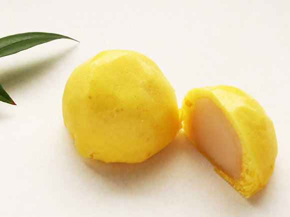 今回ご紹介する「柚子まんじゅう」は、柚子のような鮮やかな黄色のお饅頭です。