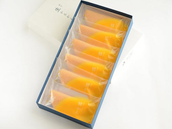 かるかんの中に入っているのは小みかんあん、みかんのあんは珍しいですよね。