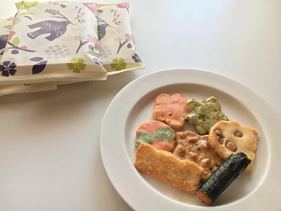 味や形が四季を表現していて、海老味の「ふっくら梅」や青のり味の「青のり紅葉」、黒胡麻味の「黒胡麻さくら」など見ても食べても楽しめるお土産になっていておすすめです。