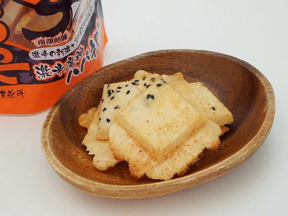 激辛魔神ハバネロンは、南部せんべいにハバネロパウダーをまとわせたもの。