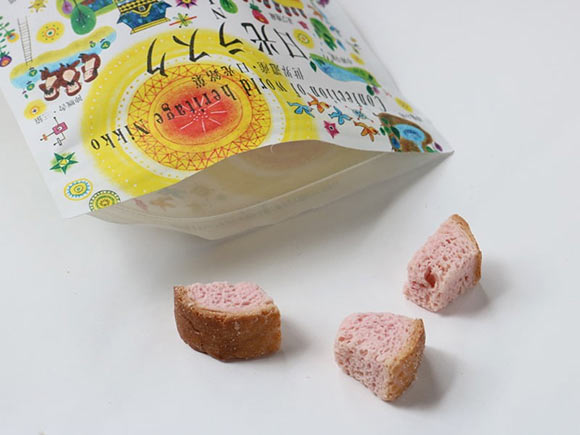 「日光ラスク 苺チョコ」は、特許製法により、フランスパンの繊維の奥まで苺チョコレートをたっぷりと染み込ませたラスク。
