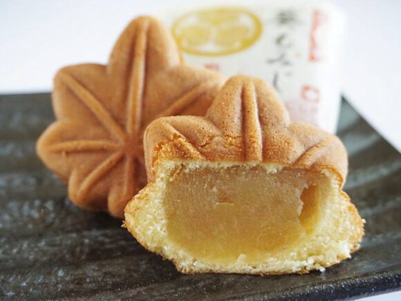 紅葉山にちなんだもみじ饅頭に、徳川家の家紋である葵を合わせた葵もみじ。