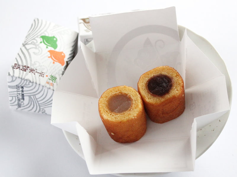 「新・平家物語」は赤小豆と白小豆それぞれをカステラの中に詰めたお菓子です。