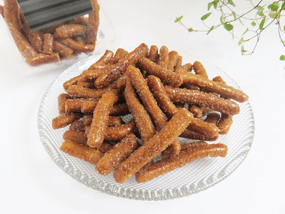 かりんとうの表面にコーティングされた砂糖の量もほどよく、甘さ控えめになっています。