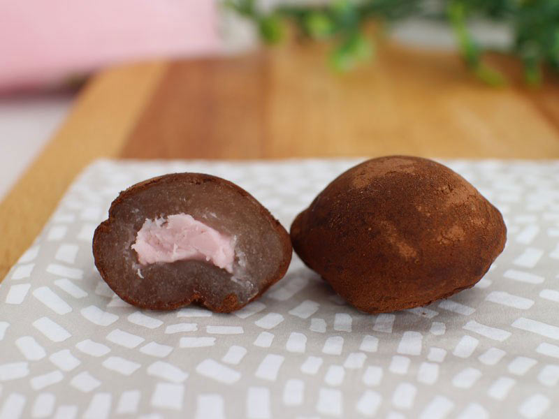 大福は直径3㎝程度。ココアパウダーがふんだんにまぶされて美味しそうですね。