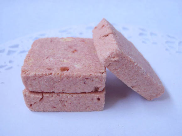 チョコレートにカステラのラスクと乾燥いちごを混ぜ込んだ、焼きチョコラスク。