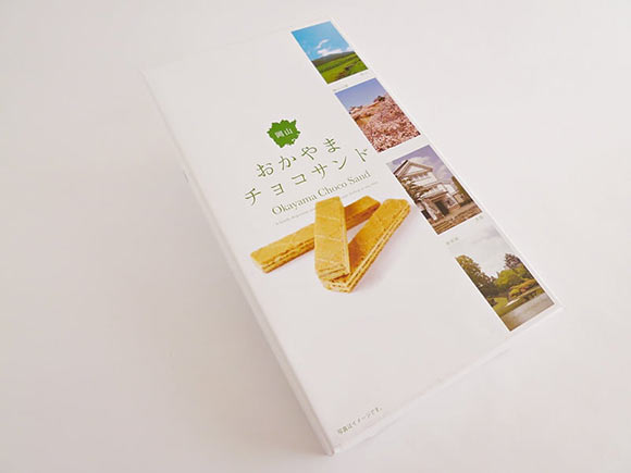 おかやまチョコサンドとは、ウエハース生地にホワイトチョコを挟んだお菓子です。
