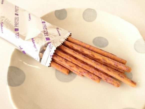 一般的なスティックタイプのプレッツェルに比べて、太さがあります。