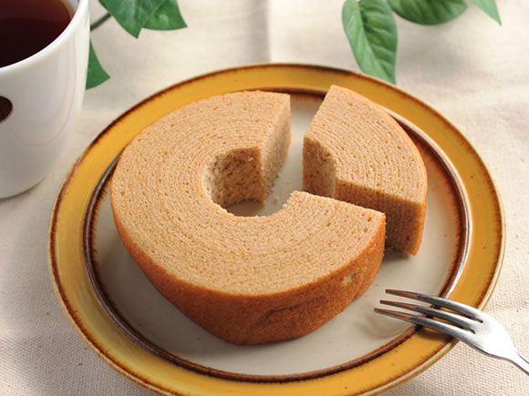 バームクーヘンからは甘い香りが立ちのぼり、食欲をそそります。しっとりとしたバームクーヘンは甘さは控えめで優しい口当たり。