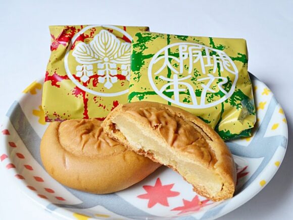 黄身が練り込まれた餡が、しっとり柔らかい生地で包まれています。