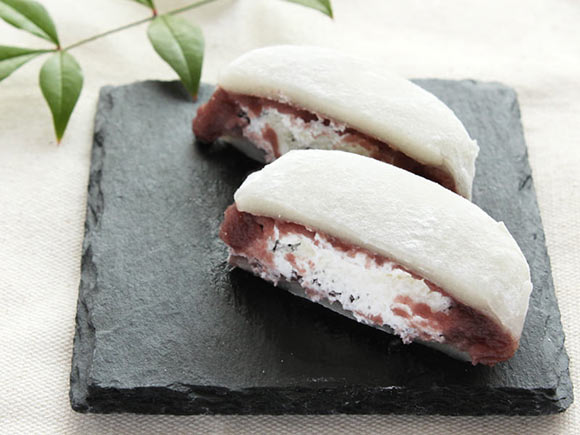 塩気の利いたお餅の中にはこし餡と生クリームがたっぷり。