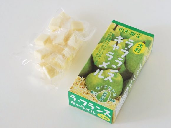 大粒ラ・フランスキャラメルは、山形県限定販売のお土産。