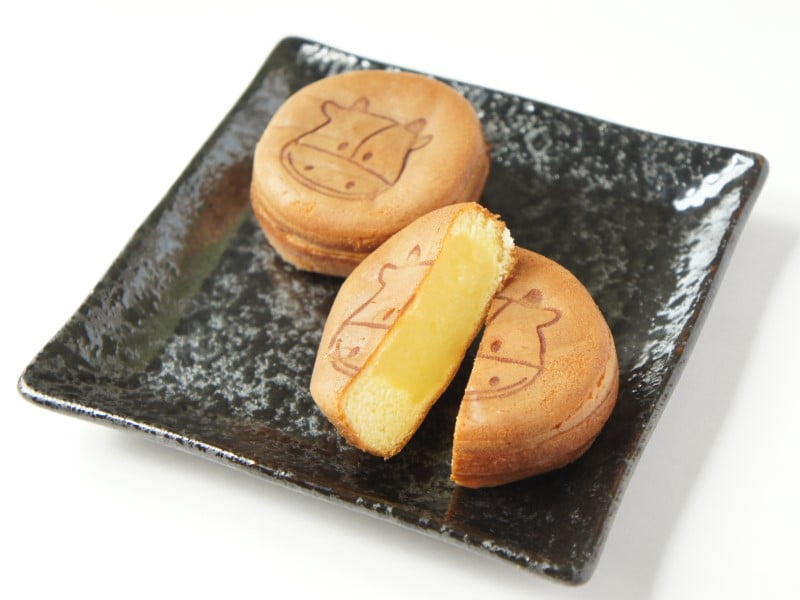 「大内山牛乳ミルクカスタードケーキ」は、生地の中になめらかなカスタードクリームが入っている手のひらサイズのケーキ。