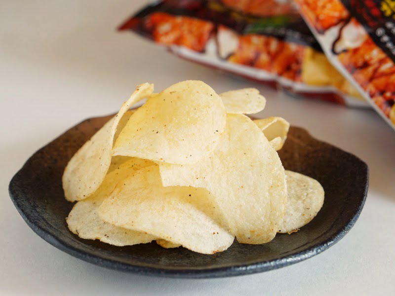 チップスの表面には、塩こしょうのつぶつぶがはっきりと見えるほど。