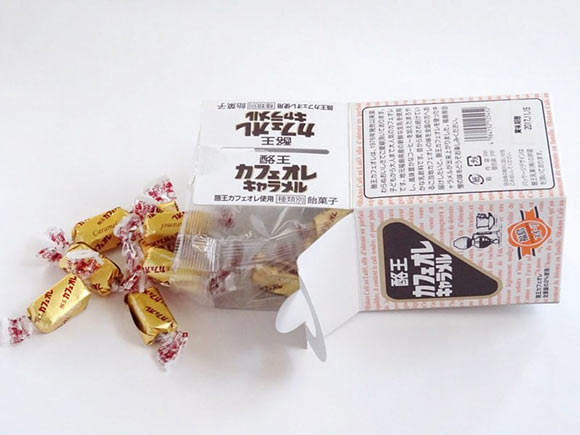 柔らかいタイプのキャラメルは、ほんのりとほろ苦い酪王カフェオレの味がしますよ。