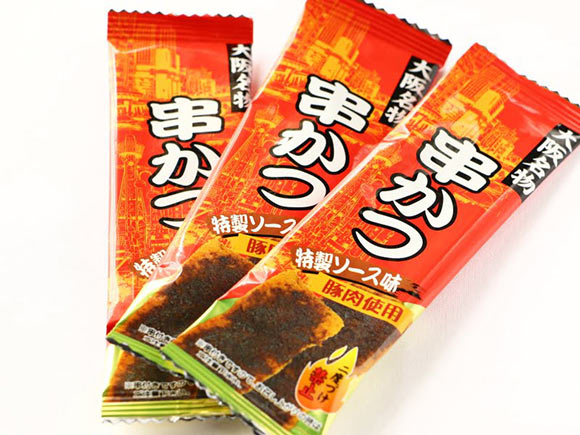 食感といい、味といい、子どものころ駄菓子として買った袋入りのソースカツを思い出すと同時に、本物の串かつを食べたくなりました。