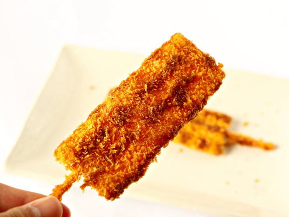厚みはないものの、串もついていますし、正面から見るとほんとに串かつそのもの。