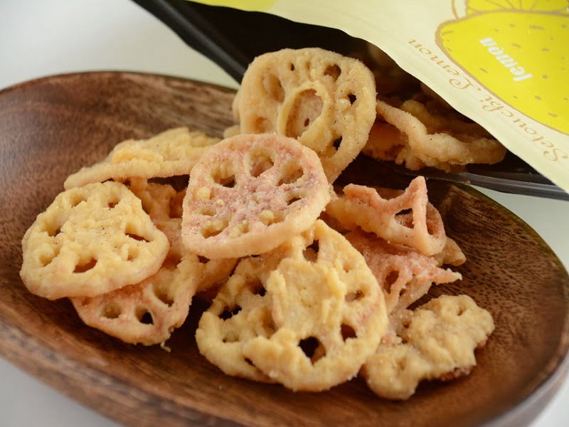 今回紹介するのは、薄切りにしたれんこんを揚げてレモンで味付けしたお菓子。