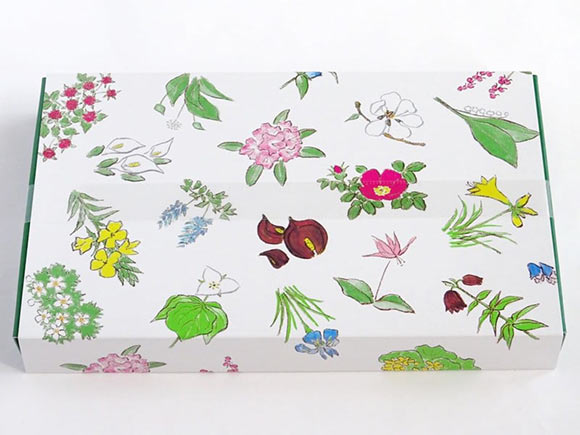 外箱の花の絵もさながら、個包装されている袋に描かれている一つ一つの花の絵が美しいです。