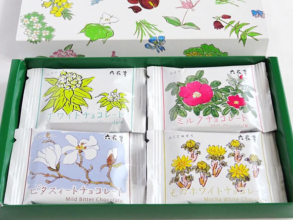 紹介する六花亭のチョコレートの箱には、六花亭でおなじみの坂本直行画伯のお花が描かれています。