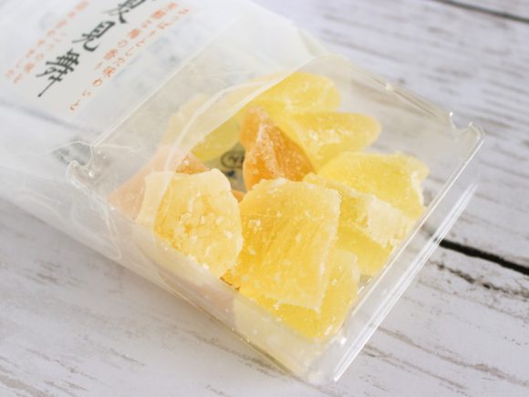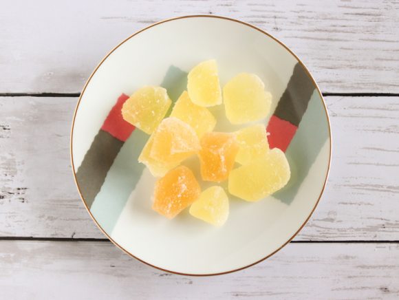 梅ゼリーをひと口サイズにカットし、砂糖をまぶして乾燥させたお菓子です。