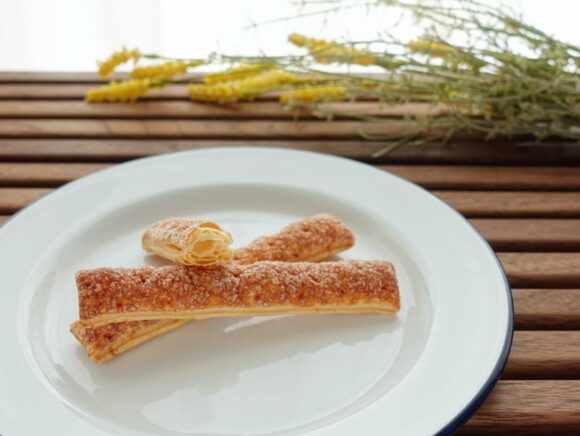 口の小さな女性でもつまんで食べやすい、細長いスティック状のパイです。
