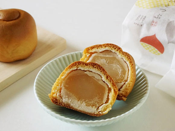 良平堂の恵那ひとつぶは、しっとりとした焼き皮に、まるごと一粒の栗を包んだお菓子。