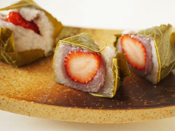 また、まわりを包んでいる塩漬けの桜の葉と一緒に食べることで、さらに甘さが引き立ちますよ。