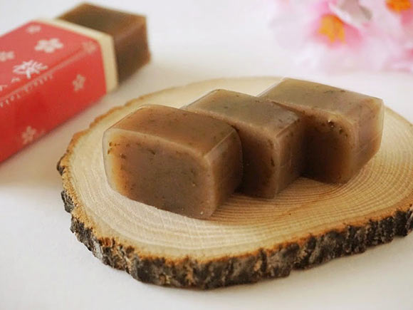 良平堂の桜さくらは、桜の葉の塩漬けを練り込んだ羊羹。