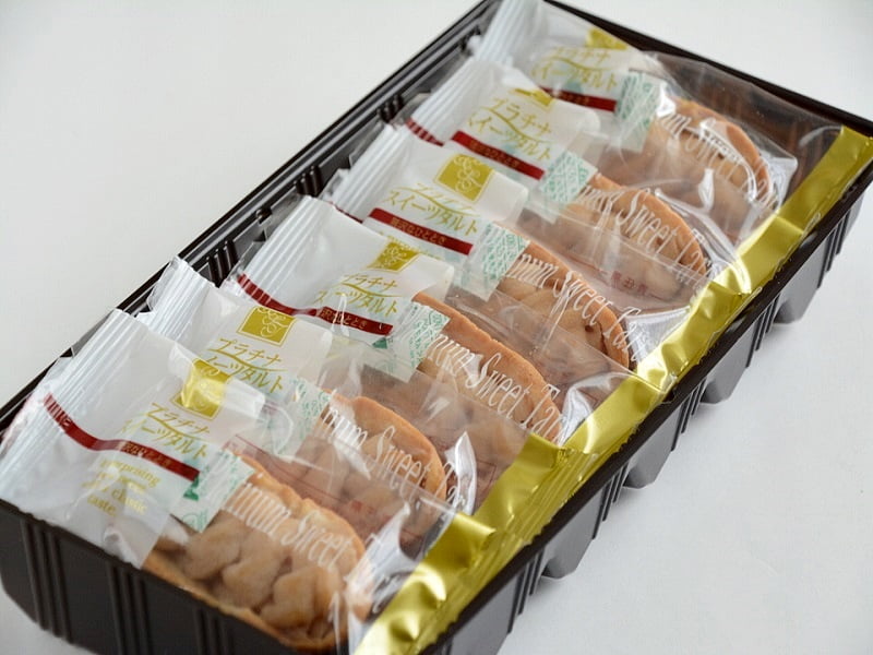 甘ったるくはなく、桃の風味がさわやかでおいしい。香りは桃、味はさつまいもという、独特の風味のするタルトですね。