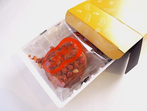 外側の包装紙の中身は、落花生柄の黄色い箱です。