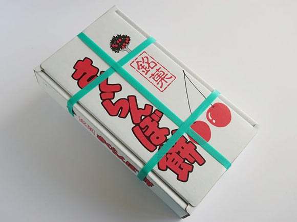 宅配便の箱を再現したパッケージと、さくらんぼ餅が並んでいる姿が可愛らしいですね。