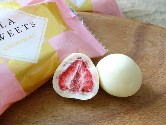フリーズドライした苺を丸ごと一粒使っているんですよ。苺は甘酸っぱく、サクサクしているのが特徴。