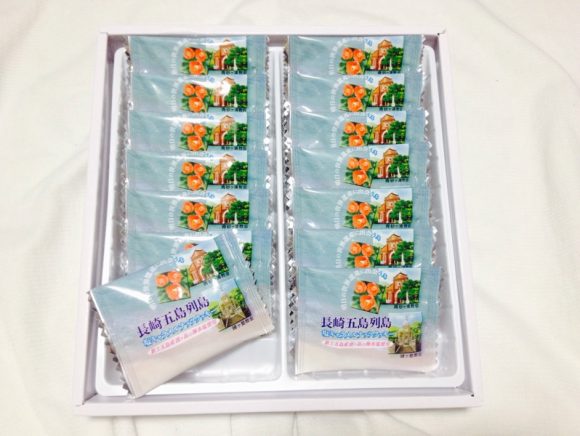 小袋になっているので配りやすいです。また、外装・内装ともに”長崎五島列島”とはっきりと記載されているので、ばら撒いてもどこのお土産かが明確なのも嬉しいポイントではないでしょうか。