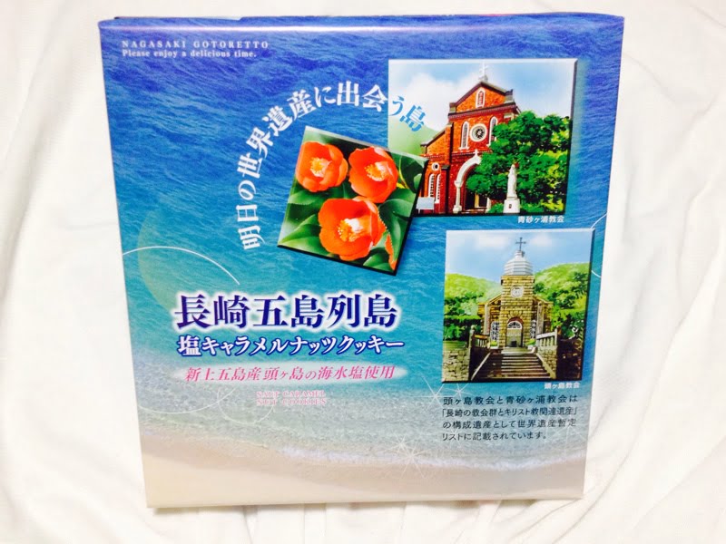 2016年8月現在、「長崎の教会群とキリスト教関連遺産」の世界遺産登録を目指す取組みが進められています。この「長崎五島列島 塩キャラメルナッツクッキー」のパッケージにも、青砂ヶ浦教会と頭ヶ島教会の写真が載っており、「明日の世界遺産に出会う島」とも記載されています。