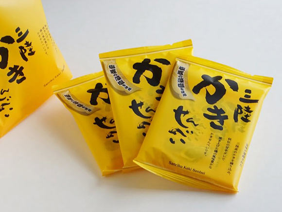 三陸産のかきを生地に練り込み、秘伝のタレを塗って焼き上げた、食べごたえのあるせんべいです。