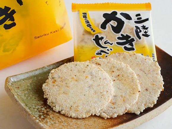 三陸かきせんべいは、宮城県塩竈市にある、海鮮せんべい塩竈が販売するお菓子。