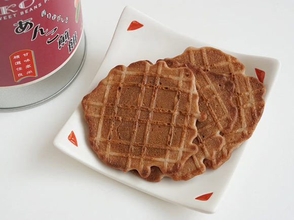 レトロ菓子シリーズのひとつ、あんこ煎餅は、自家製のこしあんを加えたせんべい。