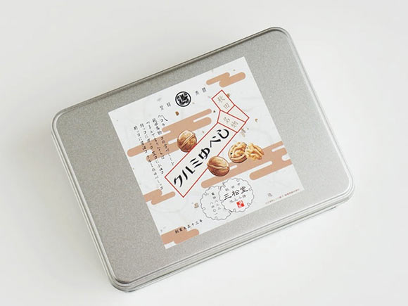 「大正昭和レトロ菓子」シリーズのひとつ、クルミゆべしには、なんと通常の5倍もの量のクルミが入っています。