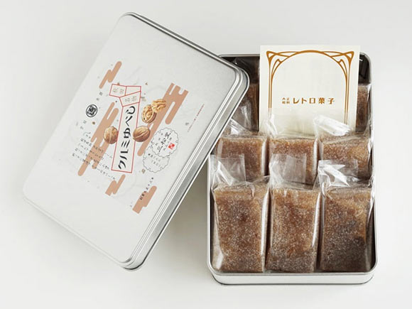 「レトロ菓子」シリーズは、ブリキ缶&レトロなパッケージが印象的。