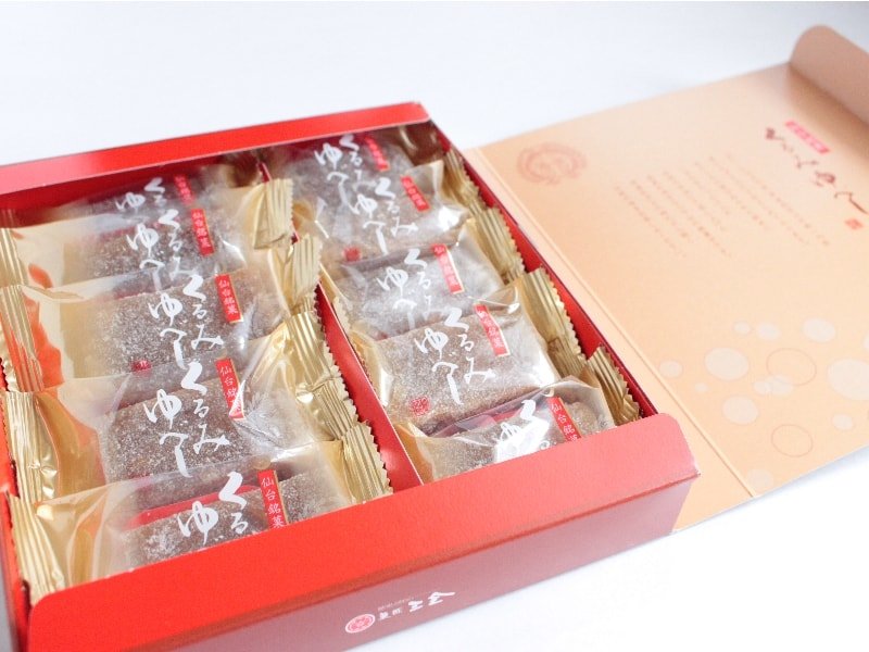 菓匠三全のくるみゆべしは、米どころで生まれたおいしいもち米を使用して作られています。伊達政宗の時代から続く伝統的な手法で蒸し上げた、どこかなつかしさを感じられる餅菓子です。