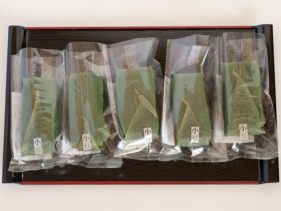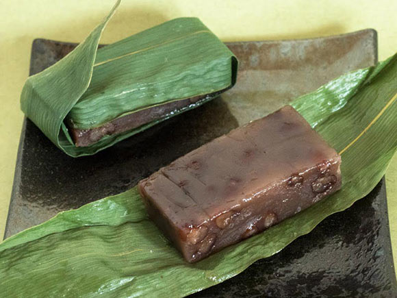 生地にはわらび粉をくわえており、蒸し上げた生地を笹の葉でくるんであります。
