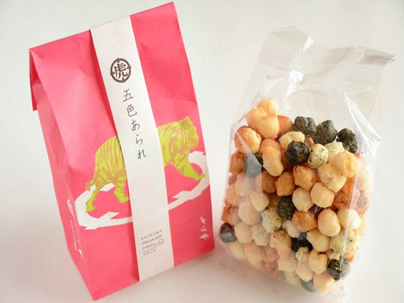 五色あられは、徳重製菓とらやが製造・販売している薩摩ソガラシ菓子シリーズの1つ。