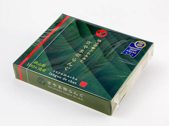 さやま茶らんぐは、抹茶味のクッキーで抹茶チョコレートをサンドしたラングドシャ。抹茶は埼玉県の狭山茶を100%使用しています。